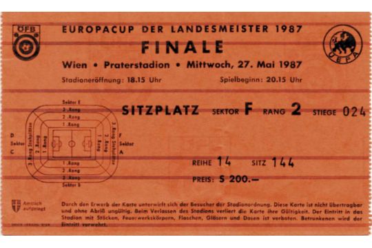 Ticket Eurocupfinal 1987 Bay Munich V Fc Porto Prater Stadium Vienna May 27 1987 Size 16 5x